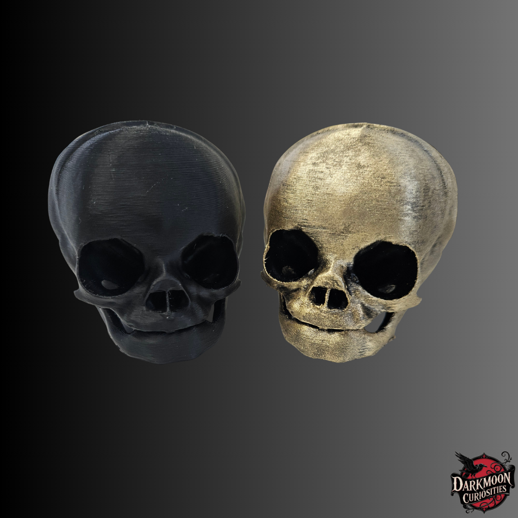Add a touch of the unusual to your collection with this Fetus Skull Décor, perfect for lovers of oddities, macabre art, and gothic interiors. This striking piece is available in classic black or hand painted and varnished gold, offering a dramatic accent for any shelf, altar, or cabinet of curiosities.