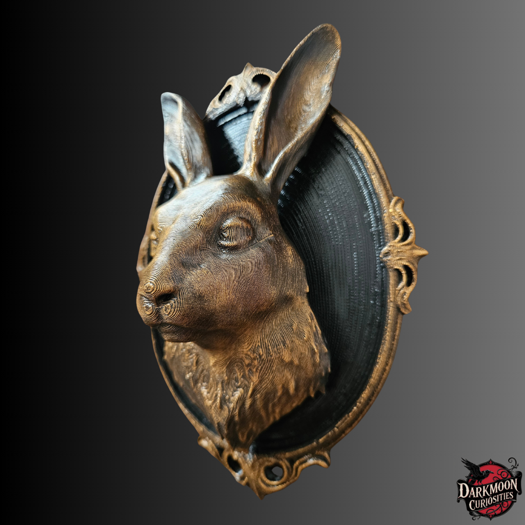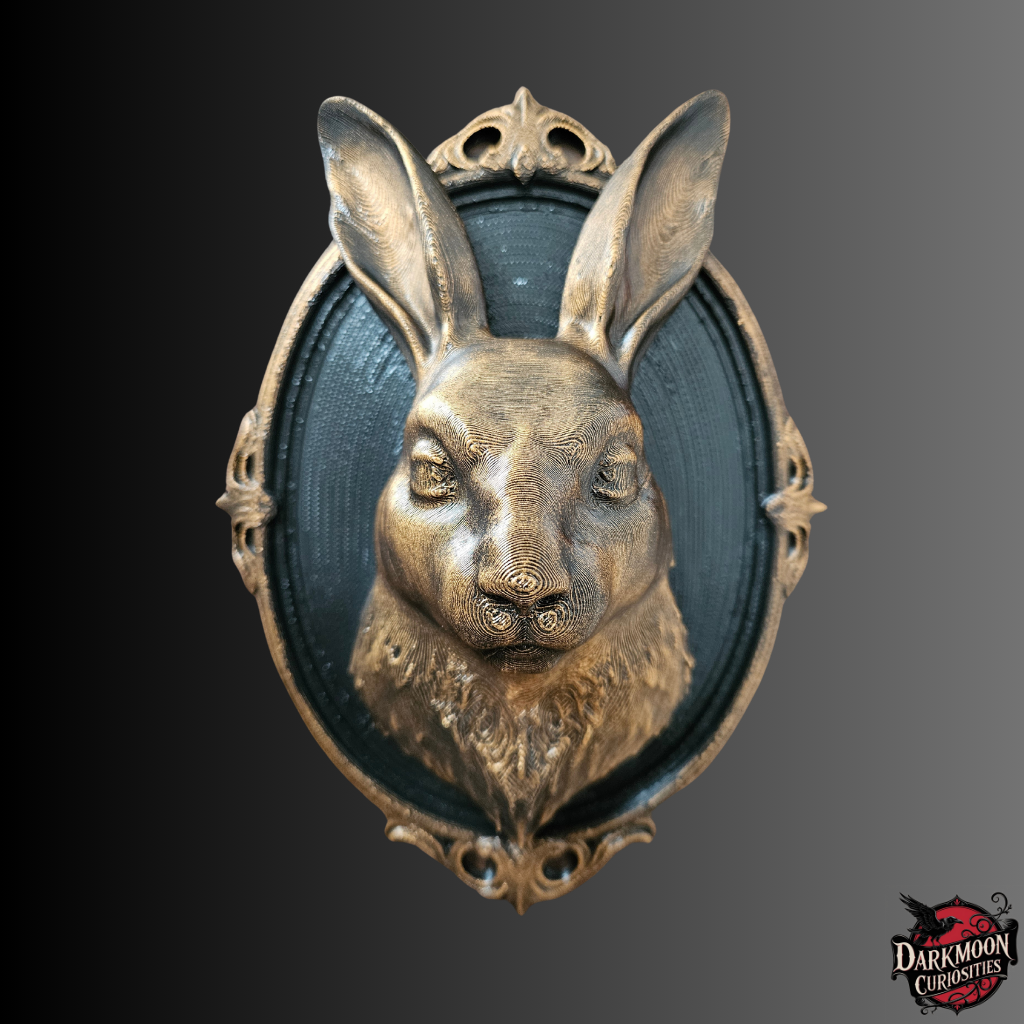 This Gothic Framed Rabbit Wall Decor brings a touch of dark elegance to any space. Hand painted in rich antique brass tones, the piece captures a hauntingly beautiful rabbit portrait framed in ornate gothic detail. Each artwork is finished with a glossy spray varnish for a subtle sheen and lasting protection.