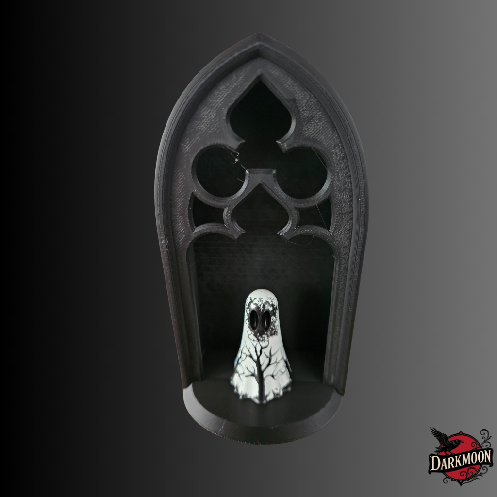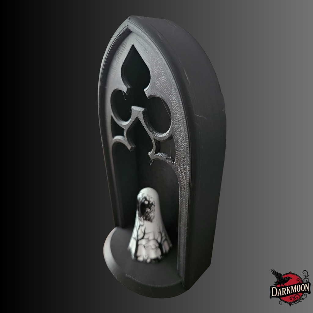 Your spooky little friends deserve a proper home—preferably one that looks like it came straight from a haunted cathedral. This Gothic Ghost House Display is a 3D printed shrine of dark elegance, perfect for showcasing small figures, ghosts, or other curious miniatures.