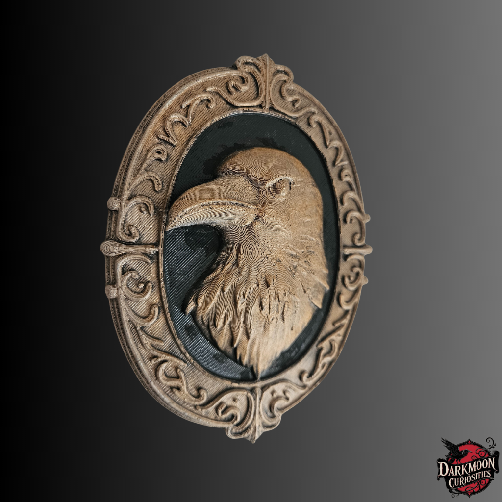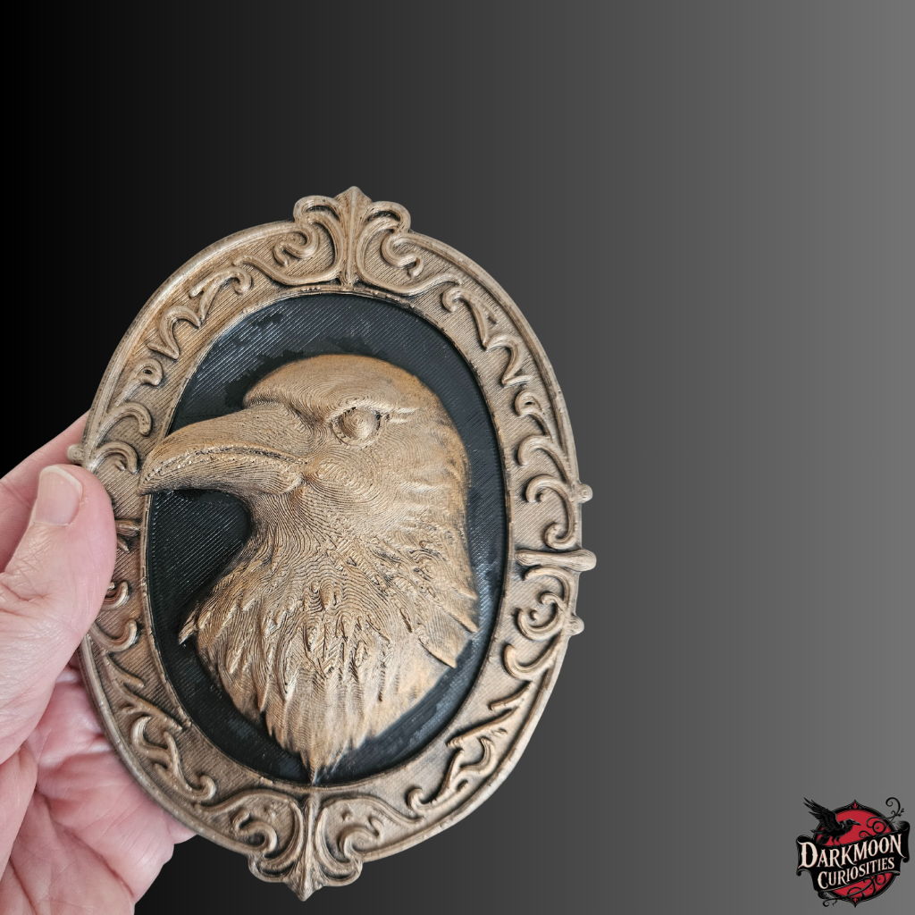 The Ornate Crow 3D Printed Frame captures the essence of gothic elegance and dark artistry. Featuring a detailed crow surrounded by an intricate baroque-style frame, each piece is hand painted in a choice of bronze, gold, or silver and sealed with a protective varnish for a lasting finish.